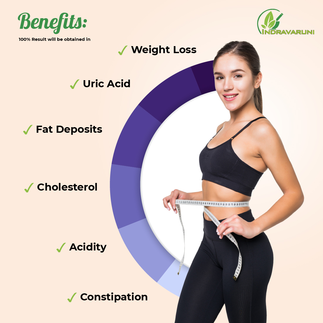 100% result will be obtained in weight loss/ uric acid/ fat deposits/ cholesterol/ acidity/ constipation.
